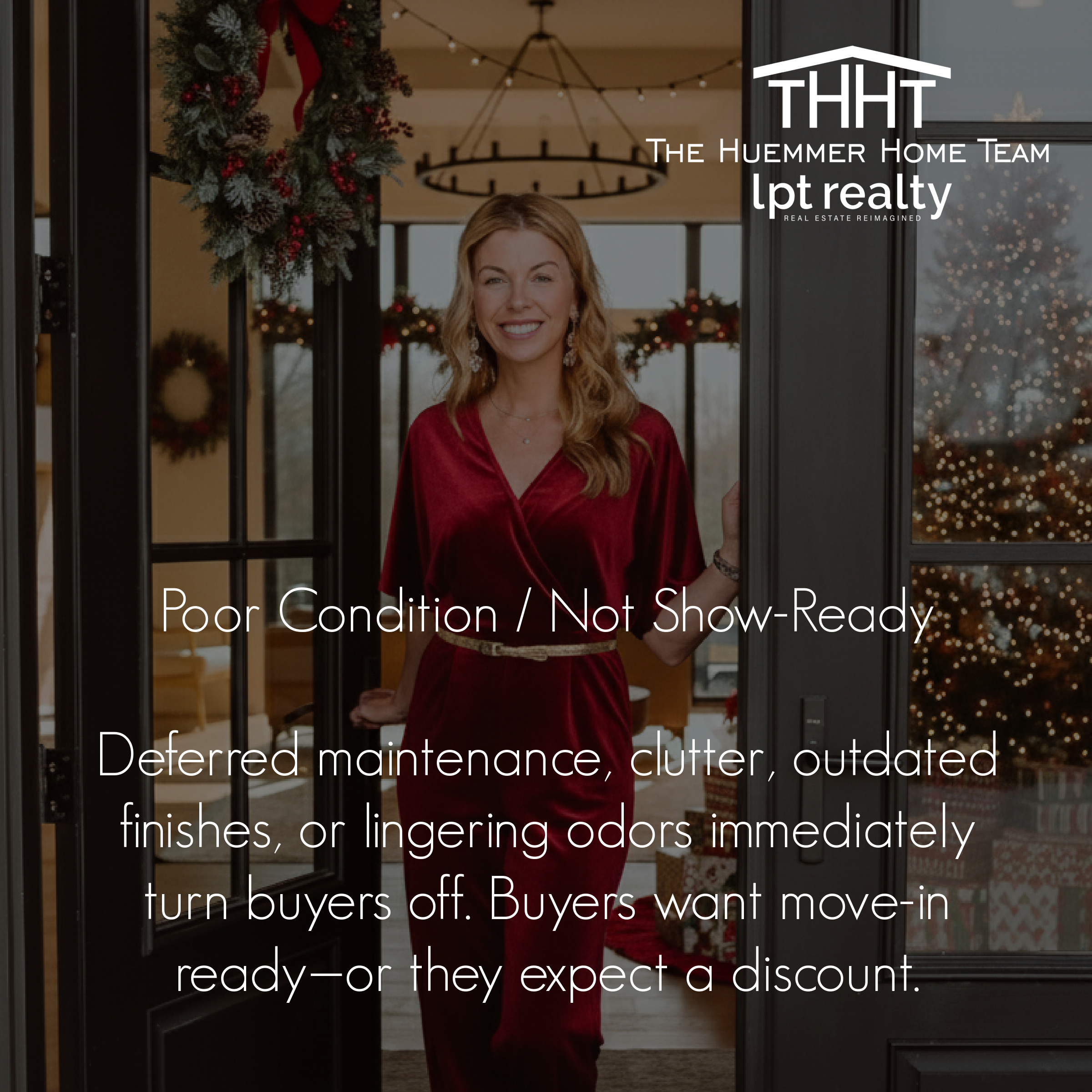 Another major factor is a home not being show-ready. The holidays can unintentionally make this worse. Excessive décor, clutter, unfinished projects, or deferred maintenance can distract buyers and make it difficult for them to envision themselves living in the space. While warmth and seasonal touches are great, buyers still want to see clean lines, open spaces, and a home that feels well cared for.